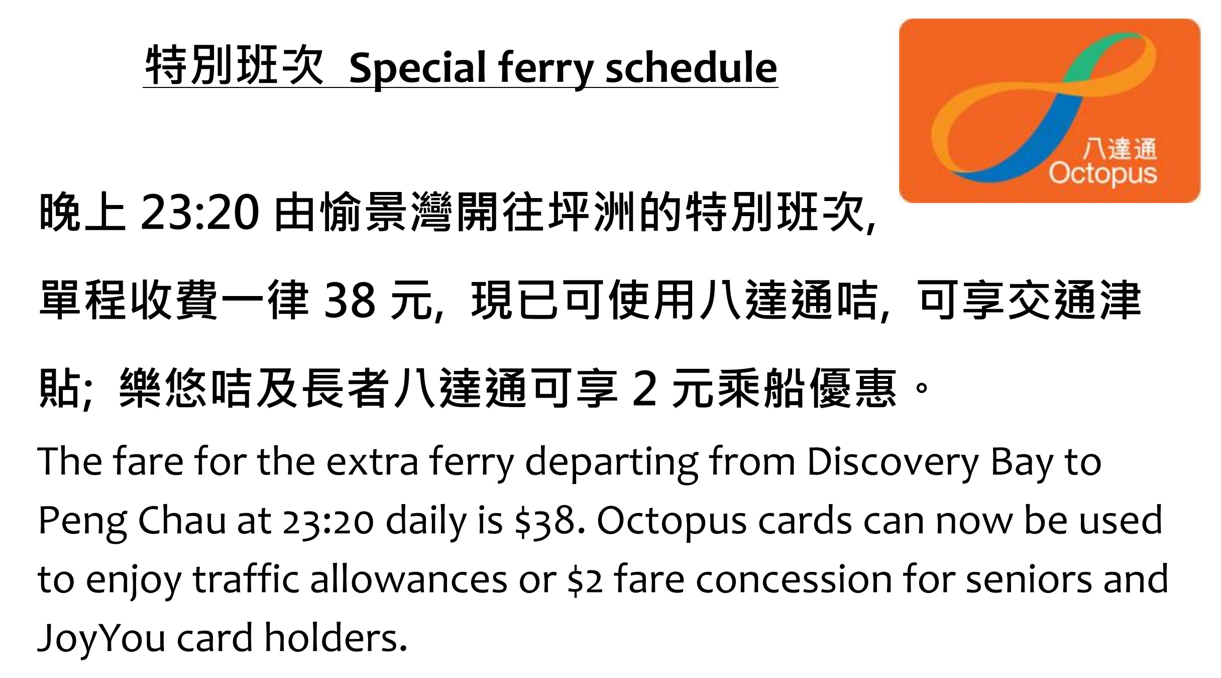 | Eligible Elderly and Disabled (Octopus) | $2 |